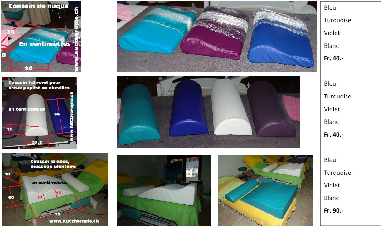 - avec toutes les options : extenseur de largeur aux épaules, dossier relevable, fente nasale dans le plateau, têtière frontale en sommet de table ajoutable inclue, repose bras inclus, réglable en hauteur, renforts dans les angles, rembourrage épais et confortable, simili cuir bleu ciel
